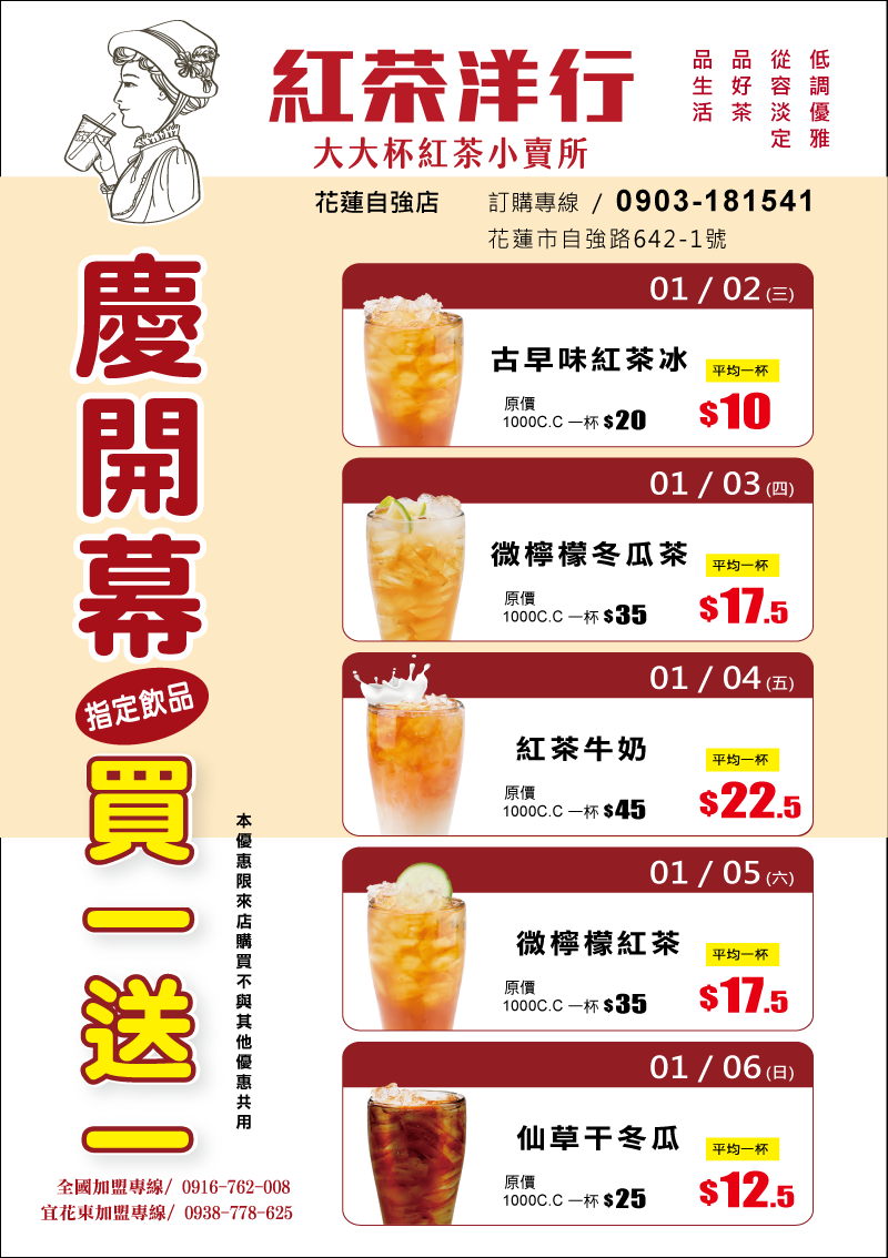 新店開幕歡慶 指定飲品買1送1