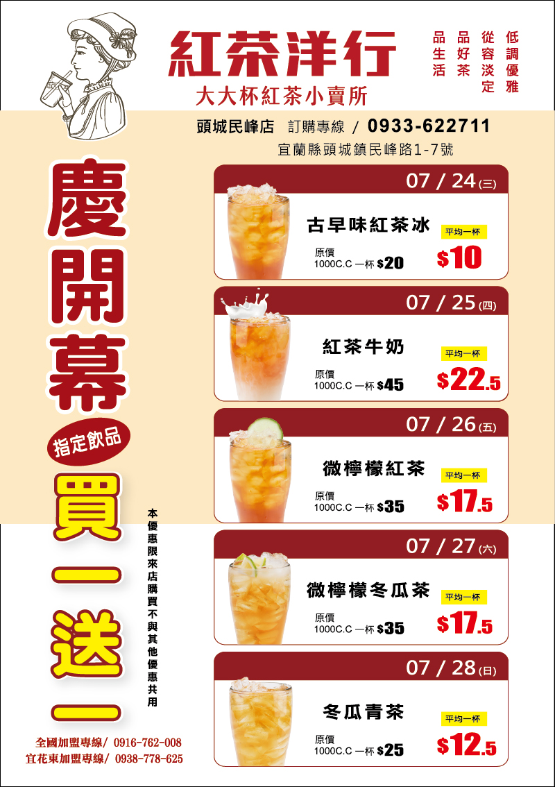 新店開幕歡慶 指定飲品買1送1